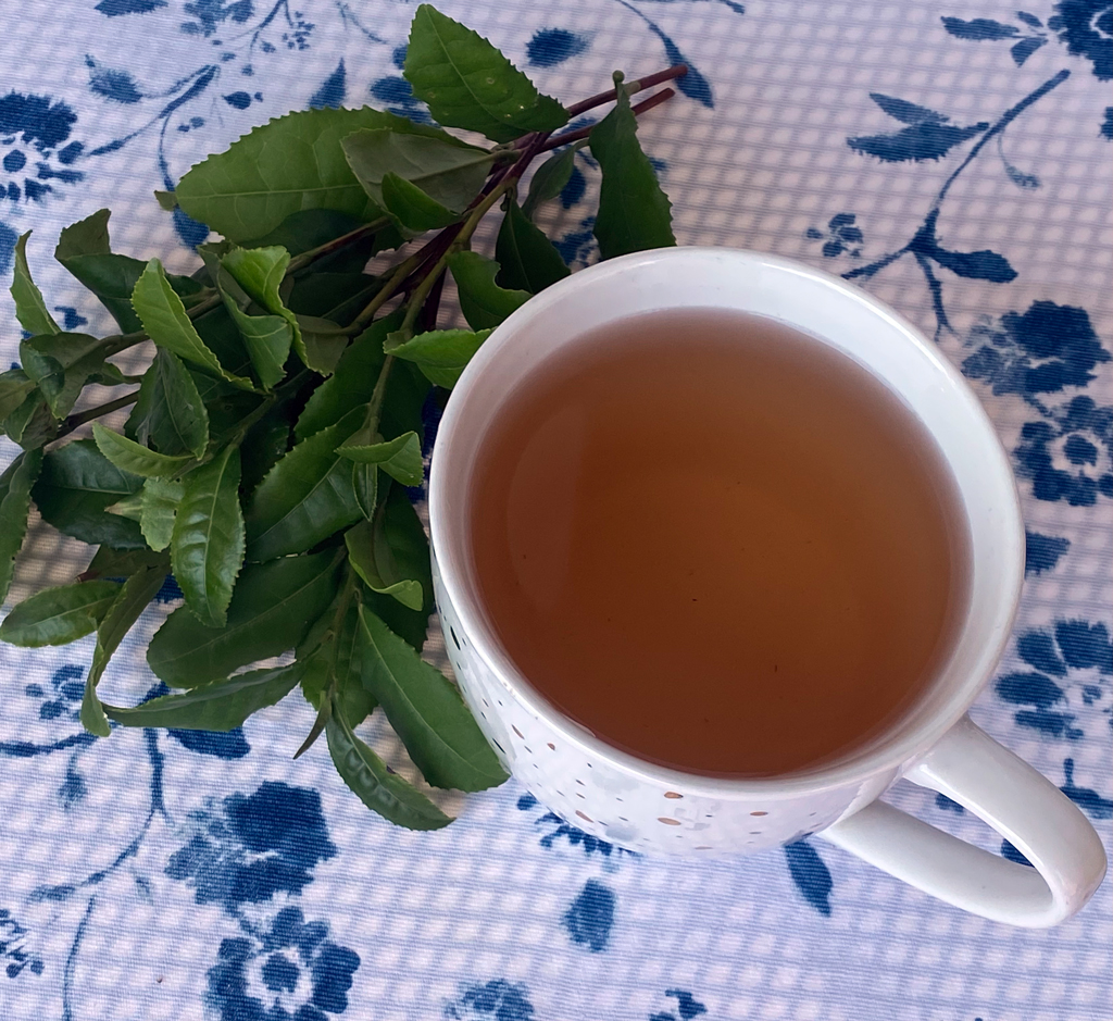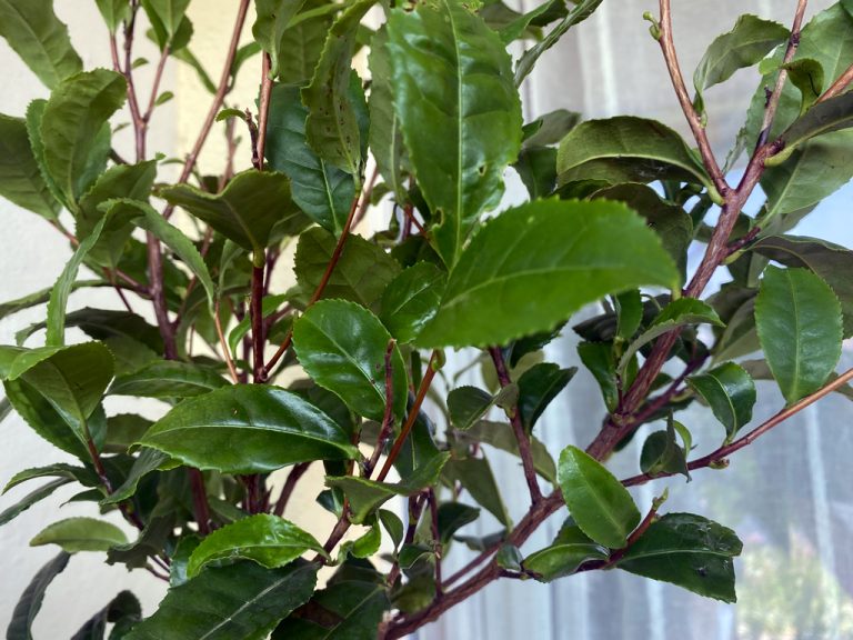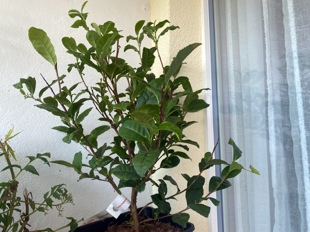 Darf ich vorstellen? Meine neue Lieblingspflanze: Camelia sinensis. Heute habe ich zum ersten Mal frischen Grüntee probiert. Wow! Ich habe einfach eine Handvoll Blätter abgezupft, sie fein geschnitten und dann mit heissem Wasser aufgebrüht. Das ist dann geschmacklich schon nochmals eine andere Dimension – und ich trinke ja nur hochwertigen Tee. Als nächstes wollen meine Tochter und ich selber Matchapulver herstellen, und uns dann auch an die Fermentation wagen. Eigener Schwarztee wäre doch der Hit! Schwarztee besteht nämlich aus den fermentierten Blättern von grünem Tee.