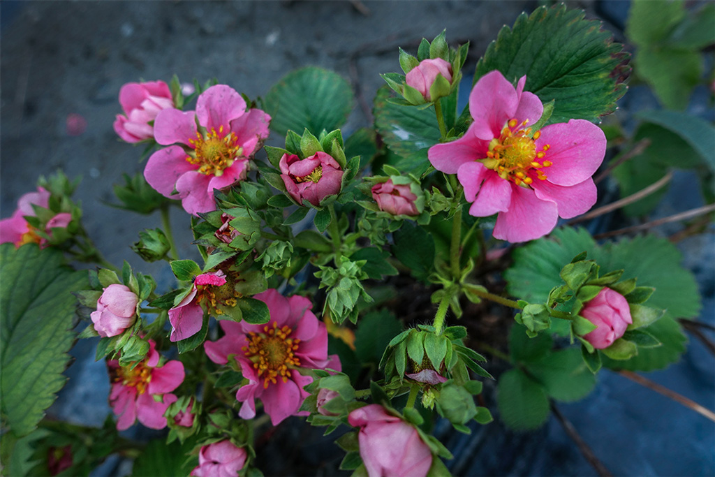 Rosa blühende Erdbeeren gibt es schon lange. Aber bisher waren ihre Früchte nur klein und vom Geschmack her enttäuschend. Entstanden sind diese Pflanzen in den 70er und 80er Jahren des letzten Jahrhunderts. Damals wurde die rosarote Blütenfarbe von Potentillas eingekreuzt, der Fokus lag allein auf den hübschen bunten Blüten. Gehandelt wurden diese neuen Pflanzen denn auch als Ziererdbeeren. Markus Kobelt: «40 Jahre lang lag der züchterische Fokus allein auf den Blüten. Nun wollen wir dazu noch die Fruchtqualität verbessern!» Sein züchterisches Ziel: Er möchte die schönen Blüten UND die leckeren Früchte in einer Pflanze vereinen. Im Zeitalter von Superfood und Balkongärtnern ist das sinnvoll. Schliesslich haben die meisten Hobbygartenfans nicht so viel Platz auf dem Balkon und in den Gartenbeeten, und auch nicht so viel Zeit, um diverse verschiedene Pflanzen zu kultivieren. Also müssen neue Sorten her, die sowohl schön blühen wie auch eine schmackhafte, vitaminreiche Ernte bieten. So werden Platz und Zeit optimal genutzt. Punkto Standort sind rosablühende Erdbeeren nicht heikel. Wie alle Erdbeeren gedeihen sie an der vollen Sonne ebenso gut wie im Halbschatten.