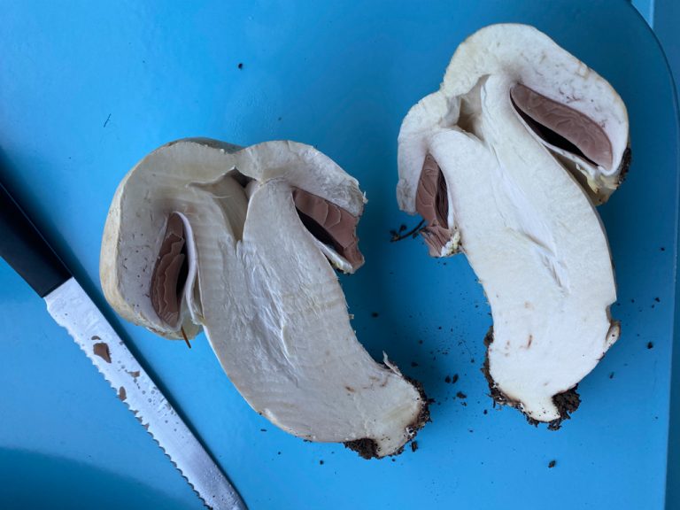 Übrigens auch sehr lecker: Waldchampignons! Die werden zwar nicht grad fussballgross, erreichen aber auch eine stattliche Grösse. Und ihr Geschmack ist wirklich exquisit. An ihrem leckeren Aroma kann man sie auch zweifelsfrei von giftigen Verwandten unterscheiden. Die giftigen Champignons haben meist einen stechenden Ammoniakgeruch. Aber wenn ihr nicht sicher seid, dann geht sie allemal lieber der Pilzkontrolle zeigen. Bei den Champignons ist es heikel, weil es eben solche und solche gibt. Und nicht zu vergessen die Knollenblätterpilze, die in ihrer jungen Form für Laien vielleicht auch wie Champignons aussehen könnten. Darum gilt wie immer beim Pilzlen: Vorsicht! Und pflückt bitte nur die Pilze, die ihr sicher kennt.