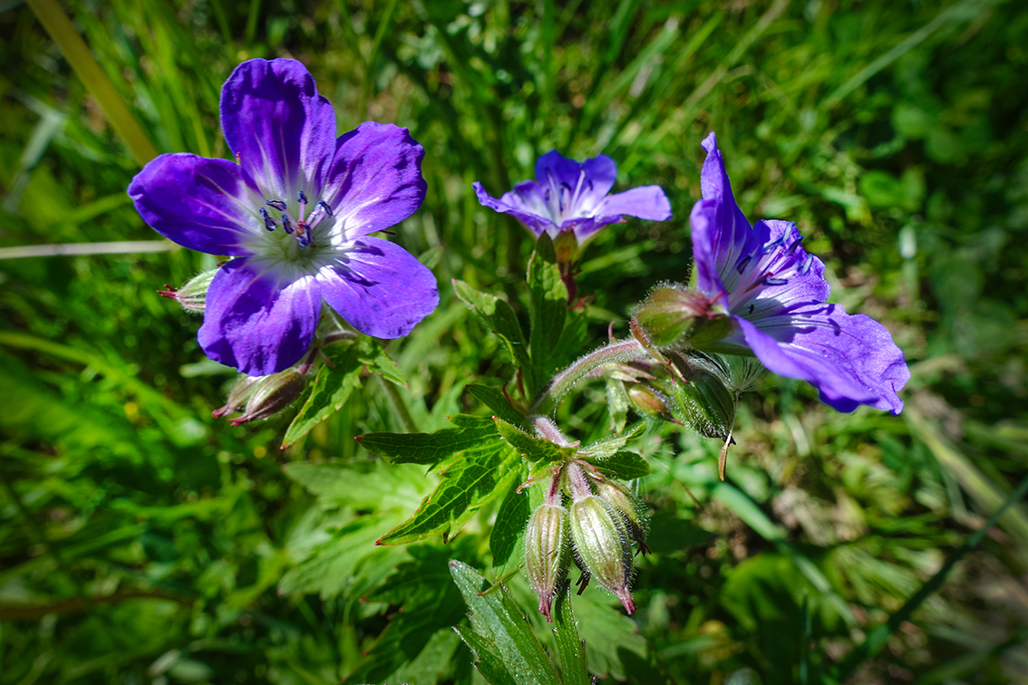 Ausserdem praktisch zum Dekorieren von Speisen ist der Günsel, von dem es verschiedene Sorten gibt, die man häufig findet, sowie wilder Storchenschnabel, der derzeit überall in den Bergwiesen blüht.