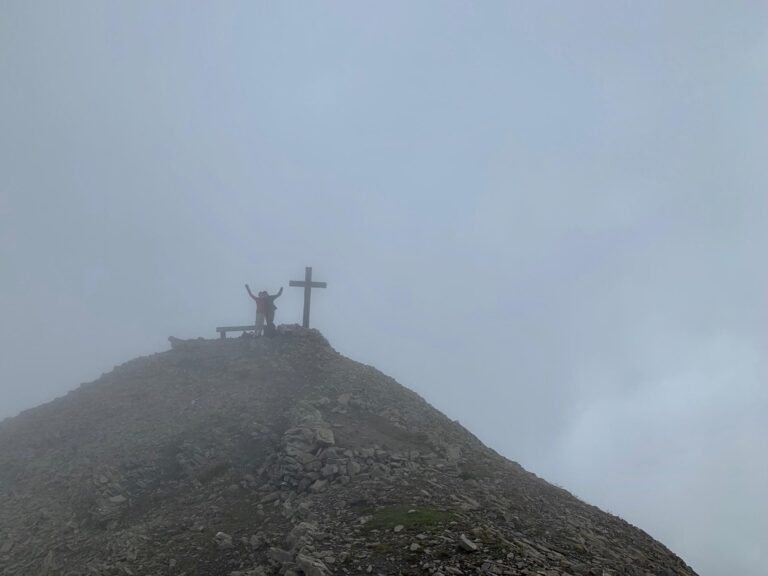 Jedenfalls waren wir gestern oben beim Kreuz, und hatten das Vergnügen, uns die Wolke, die ja öfters mal hartnäckig um den Gipfel herumhängt, von innen anzuschauen. Jawohl, Wolken von innen anschauen, das ist nämlich auch interessant!