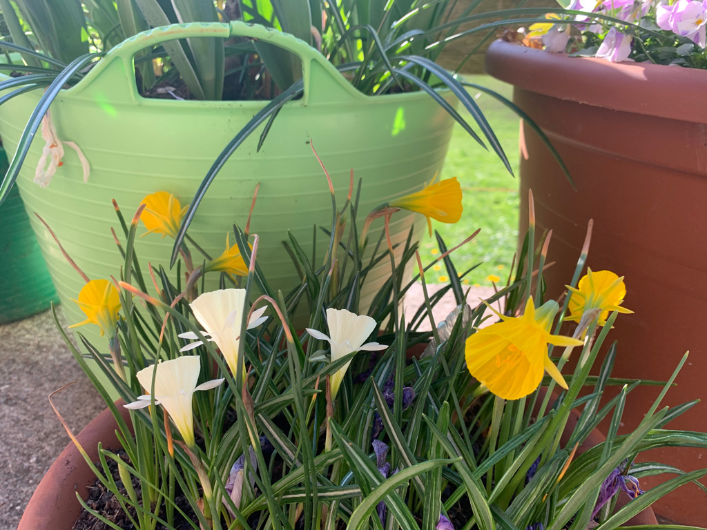 Im Unterland sind jetzt viele Narzissen schon am verblühen. Und darum schreibe ich jetzt über die Narzissen. Denn nun gilt es, sie richtig zu pflegen. Alles Verblühte wird weggeschnitten, ausser bei den wilden Narzissen. Diese versamen sich gerne im Rasen und bilden mit der Zeit grosse Kolonien. Alle anderen Narzissen aber vermehren sich besser über die Zwiebeln. Darum hindert man sie daran, Samen zu bilden. So geht alle Kraft in die Zwiebeln. Besonders wichtig ist, dass das Laub NICHT weggeschnitten wird. Das gilt übrigens für alle verblühten Zwiebelblumen. Die ganze Kraft aus dem verwelkten Laub muss sich in die Zwiebeln zurückziehen können. Also Finger weg mit der Schere, und erst mal nichts tun! Narzissen in Töpfen könnt ihr hingegen jetzt düngen, denn jetzt speichern sie die Kraft für nächstes Jahr.