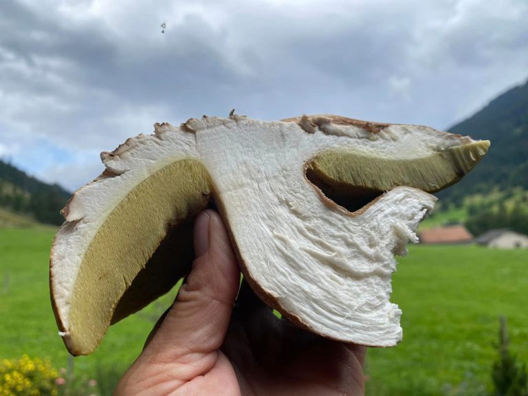Eigentlich hatte ich es nie so richtig mit Pilzen. Mit Pflanzen, da kenne ich mich aus, da hab ich ein Gefühl dafür, ob etwas essbar ist oder eher nicht. Aber die mysteriösen Sporenwesen waren mir immer leicht unheimlich. Seit ich im Saanenland lebe, passiert es mir jedoch bei Wanderungen immer mal wieder, dass ich sozusagen über einen Steinpilz stolpere. Am Anfang habe ich diese Zufallsfunde noch kundigen Pilzfreunden zur Kontrolle gezeigt. Bald war mir klar: Ein Steinpilz ist ein Steinpilz ist ein Steinpilz – da kann man eigentlich nichts verwechseln. Und alsbald hat sich das mit den Zufallsfunden etwas ausgeweitet, insofern als ich nun gezielt die Ränder der Berg-Fichtenwälder absuchte, immer schön dort, wo der Wald in offenes Alpgelände übergeht, den Blick stur auf den Boden gerichtet, um bloss nichts zu verpassen. Bald hatte ich einen Instinkt für die Standorte entwickelt – genug Nahrung von den Fichten, aber auch genug Licht und Wärme brauchen die Steinpilze. Und nicht selten werden die delikaten Köstlichkeiten von den auffällig rot-weiss leuchtenden Fliegenpilzen verraten. Wo Fliegenpilze wachsen, sind die Steinpilze meist nicht weit weg. Und wenn man einen gefunden hat, dann ist die Wahrscheinlichkeit recht gross, dass in der Umgebung noch weitere Exemplare wachsen. Nur das Timing muss man richtig erwischen. Denn Steinpilze schmecken nicht nur den Menschen. Auch die Schnecken und die Maden finden sie bald, und zerfressen sie innert Kürze. Und darum ist es dann eben doch nicht ganz so einfach, perfekte, frische Steinpilze für die Küche zu finden. Ein bisschen Glück braucht man schon, neben dem Gespür für den richtigen Ort und die richtige Zeit. Das Vergängliche aber, das macht die Pilze gerade besonders interessant. Im Gegensatz zum Gartengemüse sind sie nicht einfach da, und können nach Lust und Laune geerntet werden. Schöne Steinpilze zu finden, das ist und bleibt auch mit der Erfahrung immer ein besonderer Glücksmoment!